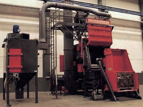 拋丸機清理室內熱區采用軋制Mn13 板防護,相對于以前的橡膠板防護,其使用壽命大大提高,且外形美觀、易于更換,是當今相對流行的清理機室體防護方式。